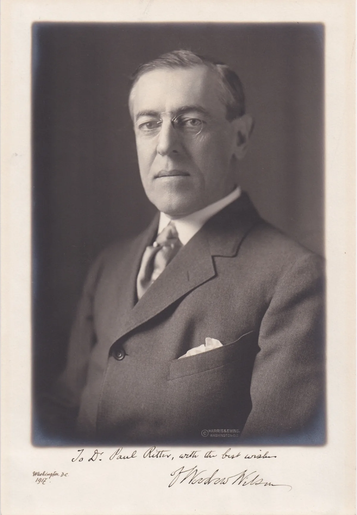 Signiertes Porträt von Präsident Woodrow Wilson für Dr. Paul Ritter